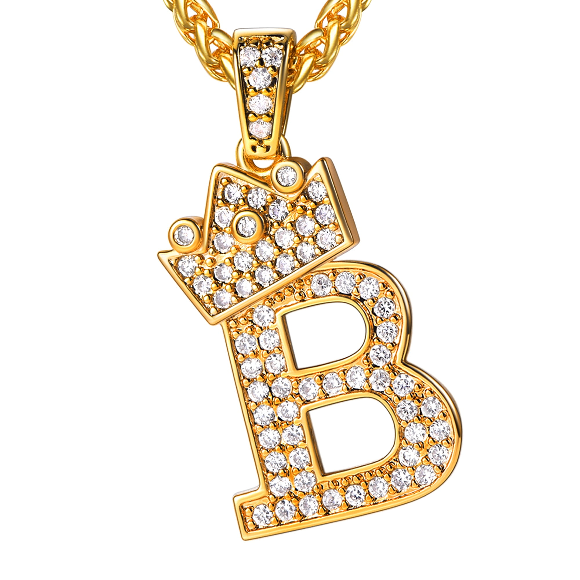 U7 Initial Crown Alphabet Necklace Cubic Zirconia Letter B 18k Gold Plated Hip Hop Rapper Pendant Chain For Men Women Walmart Com